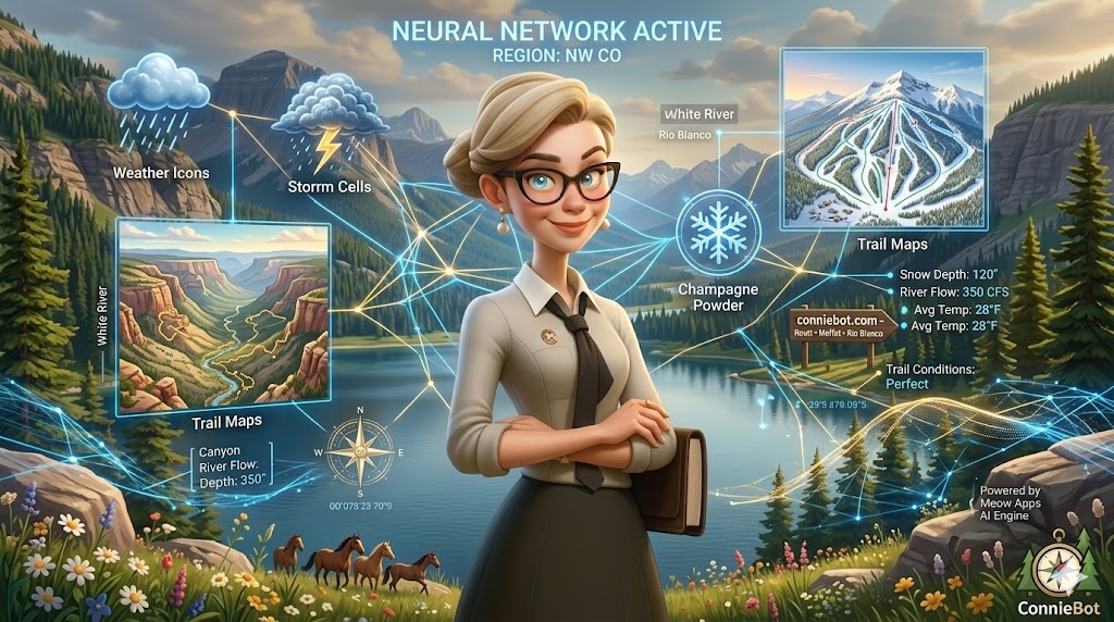 Welcome to the future of Northwest Colorado exploration. Connie Stevens (A.K.A. “ConnieBot”) is a first-of-its-kind AI Concierge specifically engineered for the rugged beauty and hidden gems of Routt, Moffat, and Rio Blanco Counties. Unlike standard search engines, Connie is a local expert, programmed with deep knowledge of our trails, history, and wildlife—available 24/7 to ensure your adventure is safe, informed, and unforgettable.